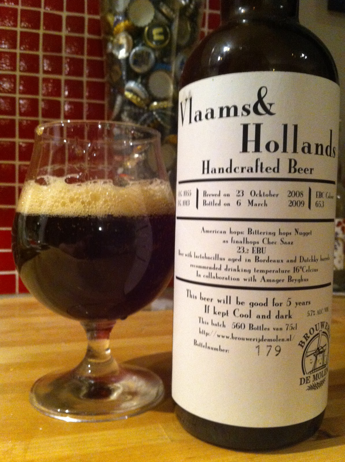 En flemish oud bruin (namnet betyder Flemmish and Dutch) med lactobacillus som jäst på bordaux- och whiskeyfat (Dutchky) som sedan blendats för att ge lite av “båda världarna”, bryggd i samarbete med Amager Bryghus.  Med 5,6% är alkoholhalten rätt inbjudande och det här var då den ölen som Menno aldrig hade haft planer på skulle hamna utanför holland då han inte vart helt nöjd. Flaska 179 av 560 och den bryggdes i oktober för 2 år sedan men tappades sedan i mars 2009.