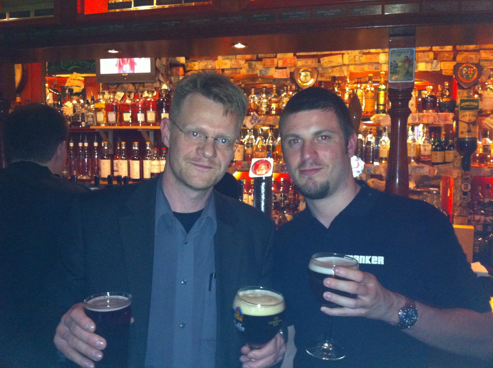 Next up was a salsica made by Gabbe’s (the owner of O’Connor) mother, a thick sausage served with mashed parmesan potatoes, wich was served together with Skjalfti, Ölvisholt’s steam beer. There is a funny history here which is a little to long to write in full, but everywhere where the beer has been released there has been a quake (Skjalfti means quake in Icelandic). The reason for the name is that the brewery is placed right on top of the continental shelf between Europe and North America. Several types of hops, among them Cascade and Styrian Gold is used in the beer. Together with the heavy sausage the crisp lightly hopped beer smoothened the thickness of the salsica while melting together with the parmesan potatoes. Steam beers are perfect with beer, in my opinion, becuase they are crisp, have smooth flavors, but are still malty and characteristic enough to be enjoyable, which this course showed.
