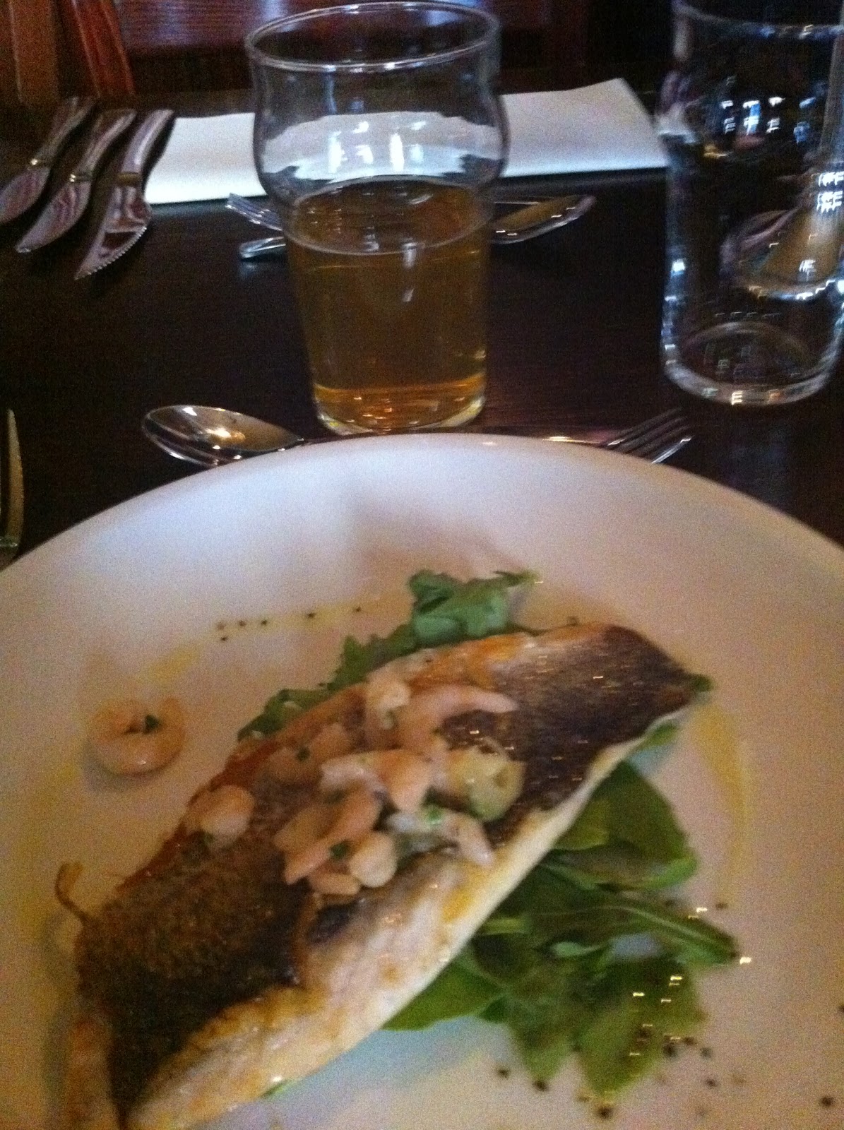 In came a seabass on melt butter with shrimps and rocket salad which was served together with Ölvisholt’s witbier. A beer brought to life in admiration of all the Icelandic women. It is not a traditional witbier but has developed into something slightly different with its foundation in the Belgian witbier but adapted to fit the Icelandic drinkers. The beer was a good match for the light easy fish. The fish together with the orange, wheat and slight spice flavor from the beer felt very Nordic with flavors that weren’t overwhelming but where they were supposed to be. If one wants to be critical one could attribute Freya with being a little to restrained on the flavors and aromas in itself. But here, together with food, and especially fish, the flavors merged and the pairing impressed the whole dinner crowd.