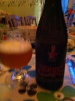 Smak: Lättare munkänsla med bra kolsyra. Här hände det lite trots allt, en rätt skön smak av mogna körsbär, en viss surhet som får tänderna att gnissla – men inte alls såsom de andra krieks eller lambics jag provad på sistone. Körsbären känns fräscha och inte alls sådär jästa och sura som de annars kan, snarare som ett glas rose med körsbär i eller något liknande. Kanske lite blommig. Nä, inte dåligt, men inte särskilt spännande utan lite för dämpad och snäll.